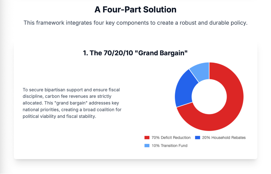 In a new research paper, we offer a different approach: a carbon pricing framework engineered from the ground up to solve this trilemma. The plan’s true innovation is not found in brand-new ideas, but in how it integrates proven policy tools into a cohesive structure built for a divided government. By focusing on political pragmatism and fiscal discipline, it presents a blueprint designed not just to work in theory, but to function as a “statutory fortress” engineered to actually become law.