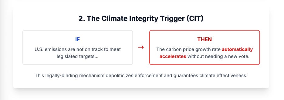 To ensure the policy delivers on its environmental promises, it includes a mechanism called the Climate Integrity Trigger (CIT). Its logic is simple and automatic: