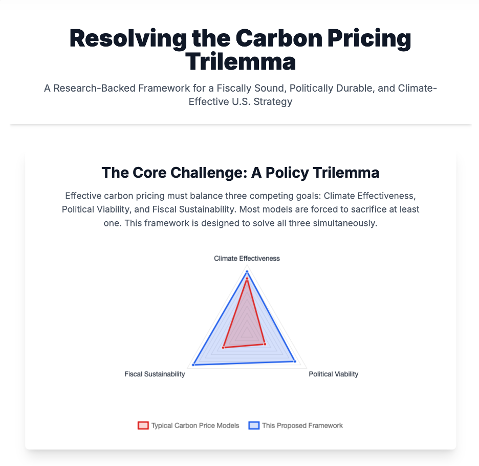 Authors’ Note: This blog post is a summary of Bob and Tim’s new SSRN research paper: Resolving the Carbon Pricing Trilemma: A Research-Backed Framework for a Fiscally Sound, Politically Durable, and Climate-Effective U.S. Strategy.