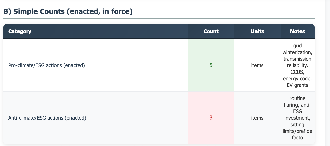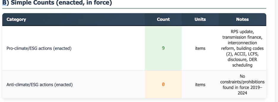 For the most part I find all of this ridiculous political theater at best and self-harming to red state citizens at worst. For a good analysis of anti-ESG policies see “ESG: Politics Over Policy and Unintended Consequences” written by my good friend Tim Doyle (R), co-founder with me of the Responsible Business Initiative, for the center-right nonprofit Centerline Liberties. My most recent piece on the ESG Culture Wars, “Here We Go Again: Red States Continue to Focus on ESG,” was written another good friend Dan Crowley (R). Interestingly enough, no state official from Texas signed this letter. Maybe they are beginning to see the contradiction between meaningless anti-ESG gestures and great solid climate (whether they want to call it this or not and I really don’t care) action on the ground.