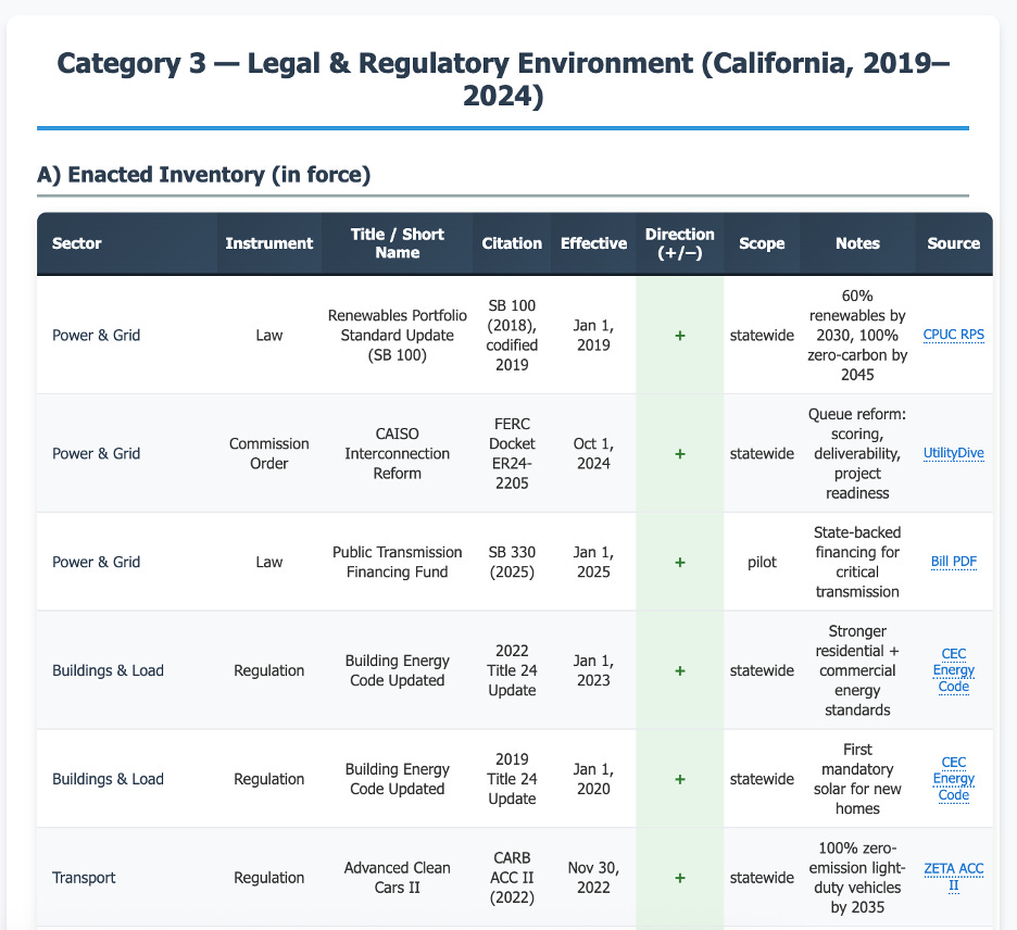 What this shows: Both states embrace climate solutions while pursuing fundamentally different pathways—California through comprehensive regulation, Texas through market incentives and practical adaptation. California's systematic policy integration contrasts sharply with Texas's market-driven approach, yet both have generated substantial clean energy progress.